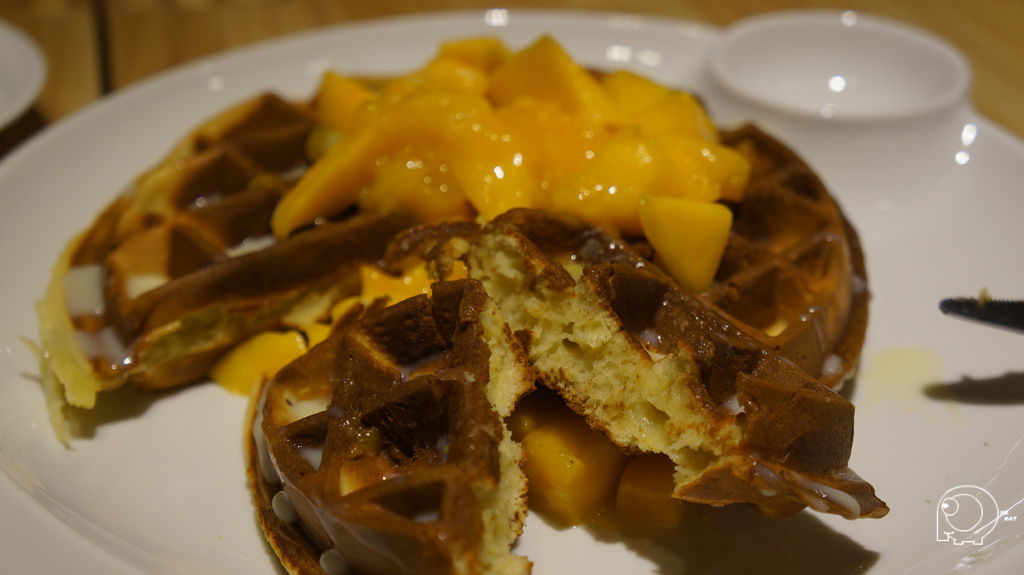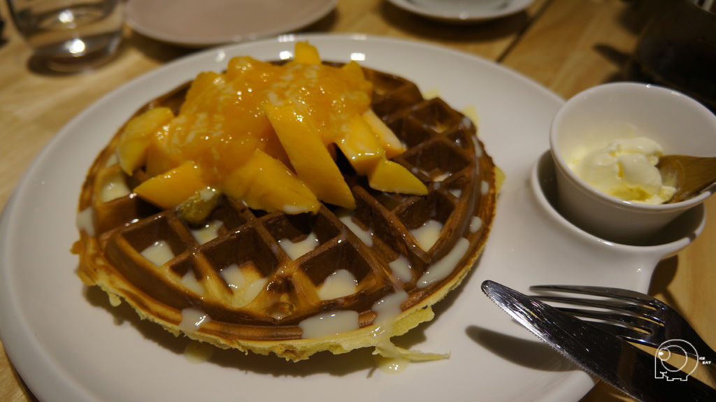 鬆餅也有很多種口味,但是老闆說昨天才從南部寄來一盒芒果,用新鮮芒果搭配美味的鬆餅,這種限時又限量的甜點怎麼有人能抵擋呢?老闆趕快上我的芒果鬆餅吧!!