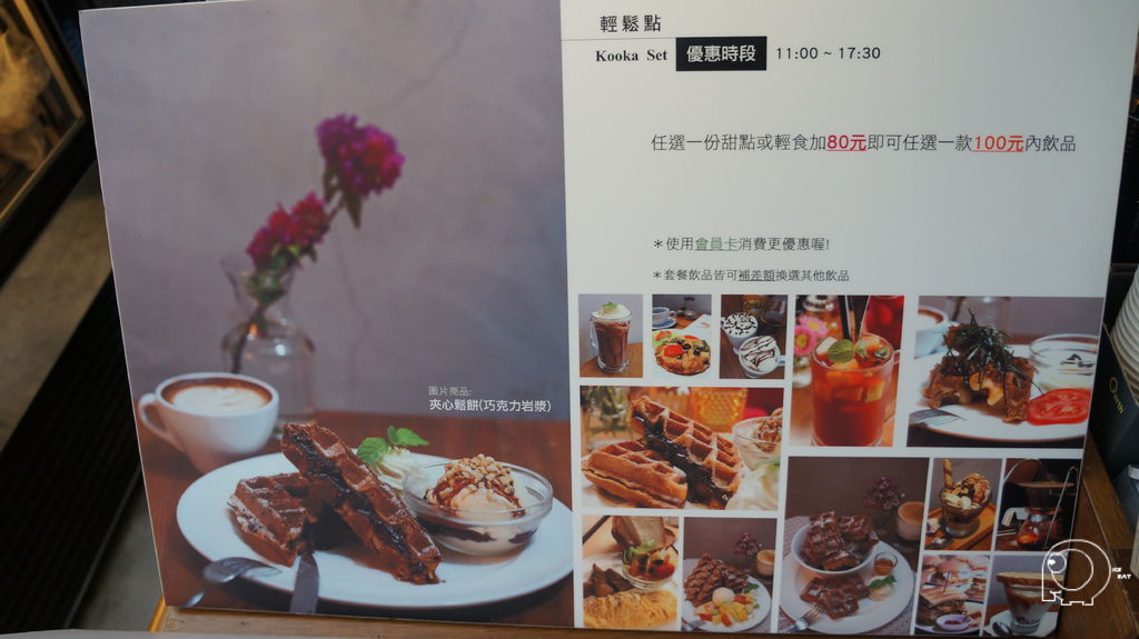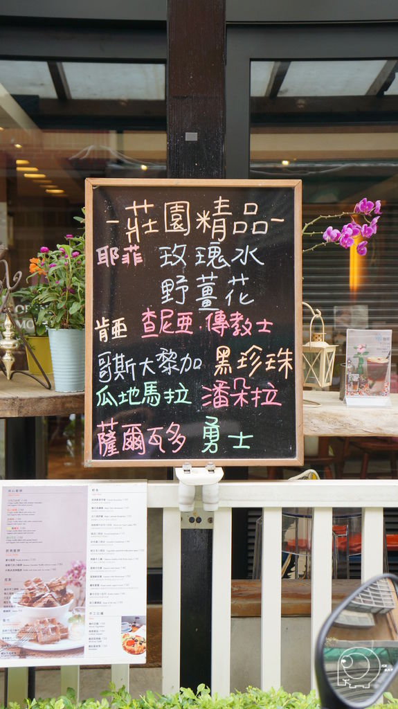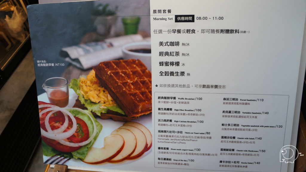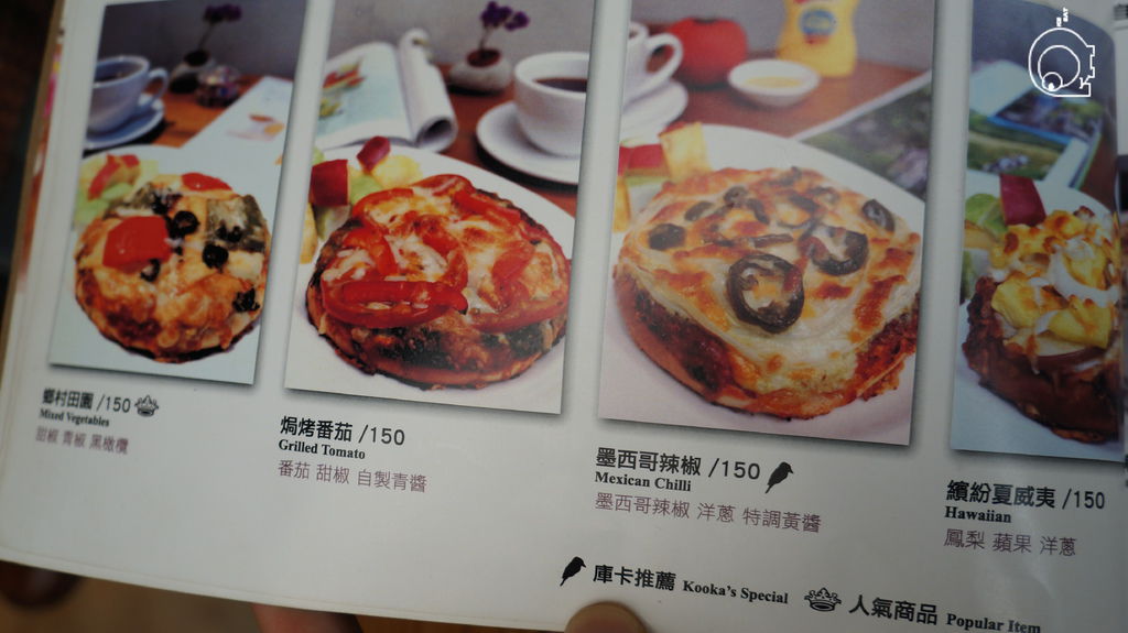 找到了喜歡的座位就可以來看Menu了.從大大的招牌可以看得出來,他們家招牌應該是鬆餅,所以美姬點的經典鬆餅早餐搭配莊園咖啡,老K點PIZZA.