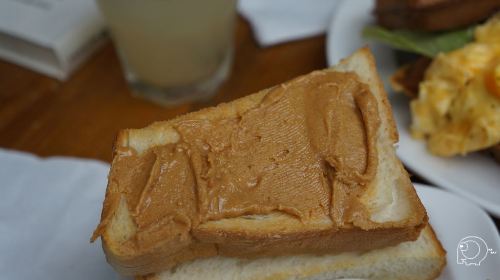 這厚片花生吐司的吐司與花生醬是分該計價,光花生醬塗料一份就要30塊,一開始看到美姬有嚇到,後來問老闆才知道,這花生醬可是鼎鼎大名新竹福源花生醬,因為老K也沒吃過這花生醬,所以不知道這花生醬有什麼特別的,這福源花生醬果然是真材實料,花生醬吃起來就是花生的味道,跟一般外面那種罐頭的花生醬不同,連不敢吃花生醬的美姬都敢吃喔,入口後是很濃很香的花生味,為了要搭配好的塗醬,這厚片吐司當然也非等閒之輩,雖然美姬不知道是哪家的土司,但是美姬相信老闆是有認真挑過的.
